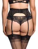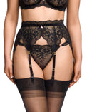 Elevate your lingerie collection with Floradora — a beautifully crafted suspender belt designed in soft, stretch lace that feels as luxurious as it looks. The waistline is framed with plush velvet accents, creating a striking contrast against the delicate lace. Six velvet-wrapped garter straps offer both stability and timeless vintage appeal, each finished with sparkling crystal touches that add a hint of opulence. With its intricate lace, velvet bow details, and radiant embellishments, this suspender is a true statement piece for the lingerie lover and collector alike.